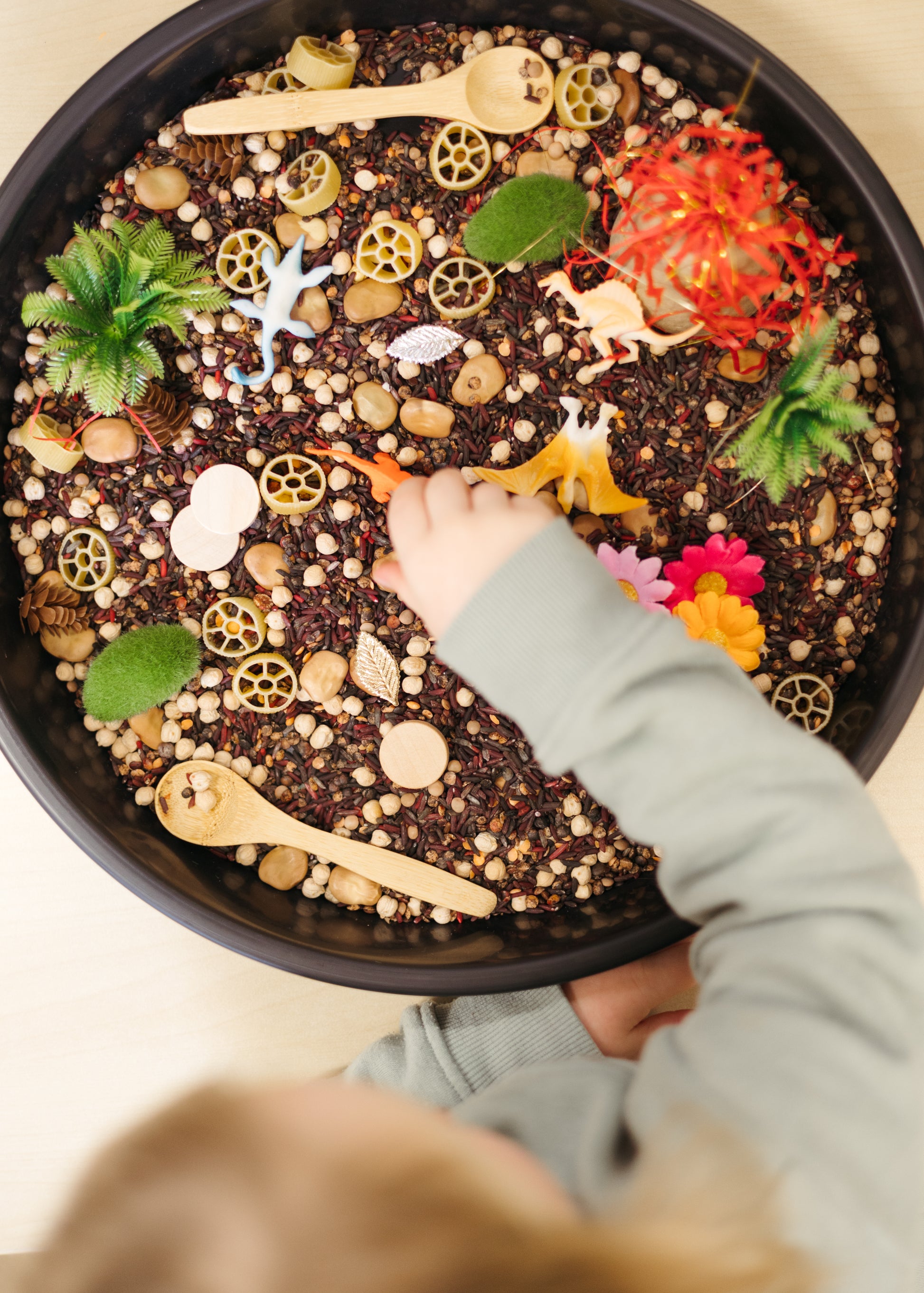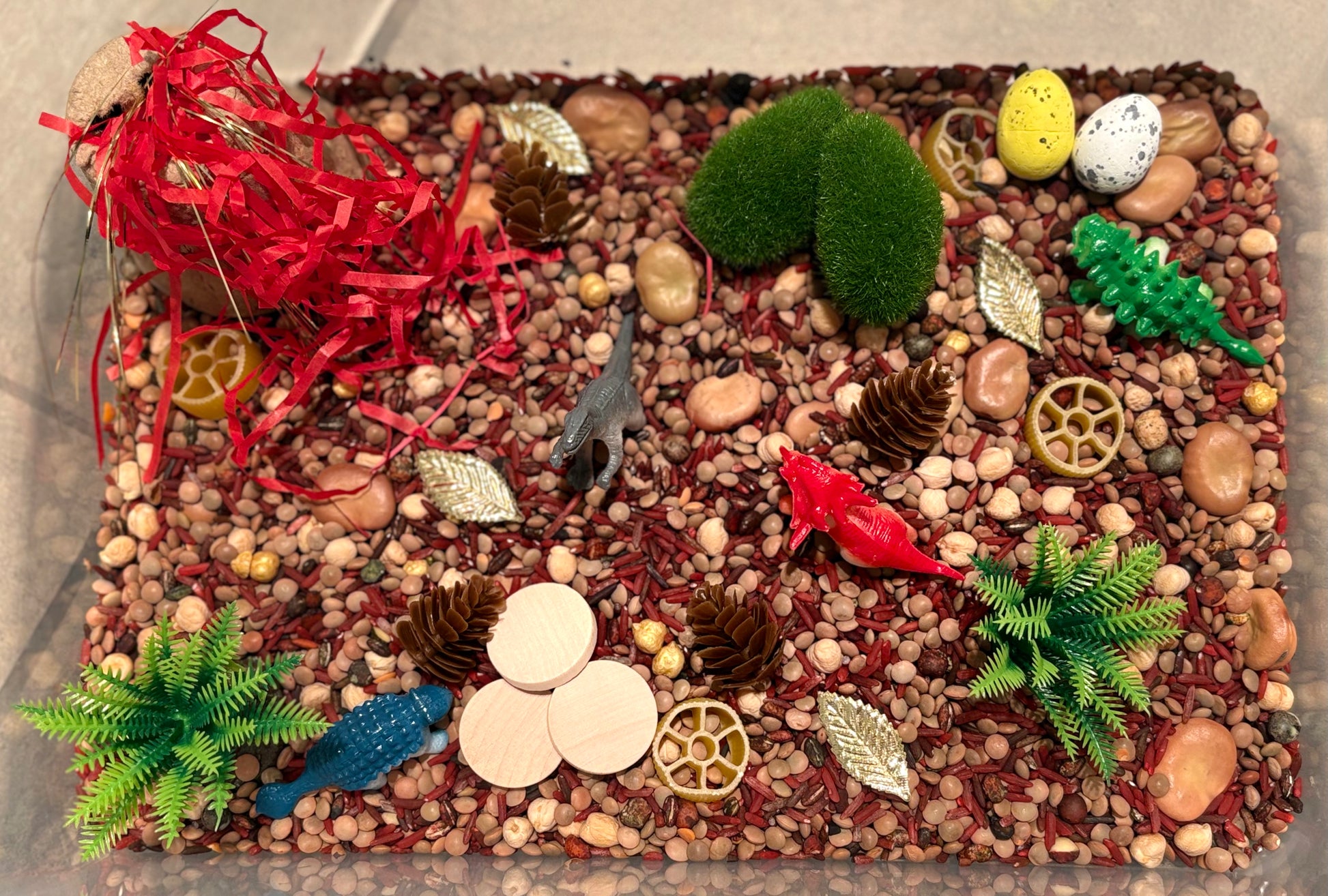 Step back into the land before time with our Jurassic Times sensory kit — where young explorers can uncover a prehistoric world of adventure! This pour-and-play kit is packed with natural textures and dino-mite fun to spark imagination and sensory discovery.